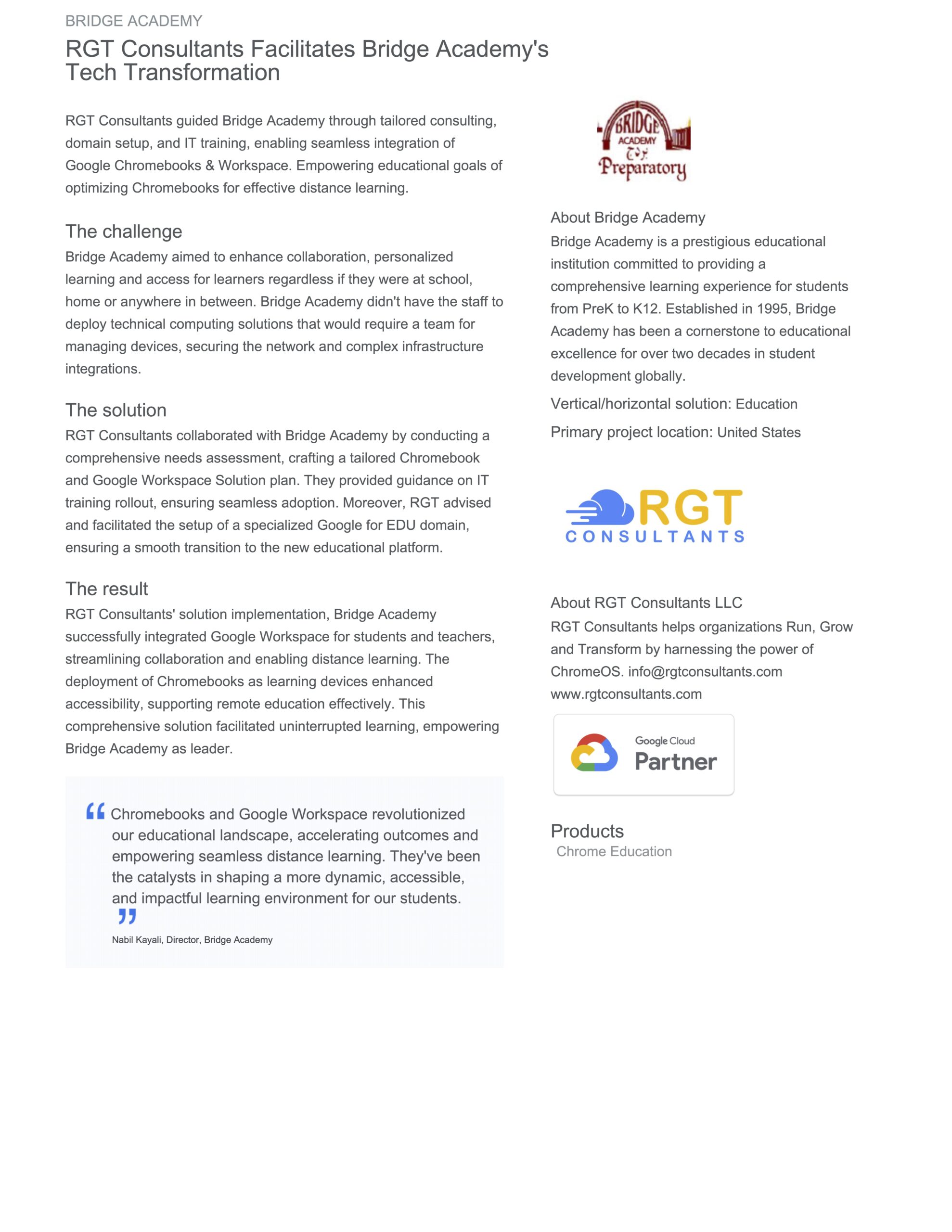RGT Consultants Facilitates Bridge Academy’s Tech Transformation